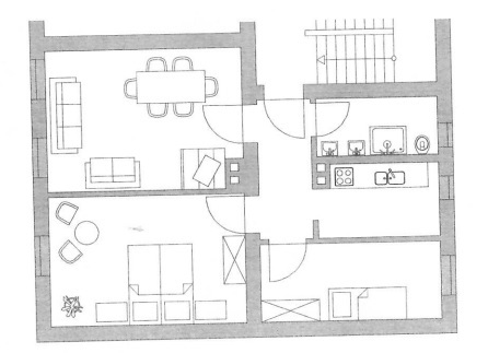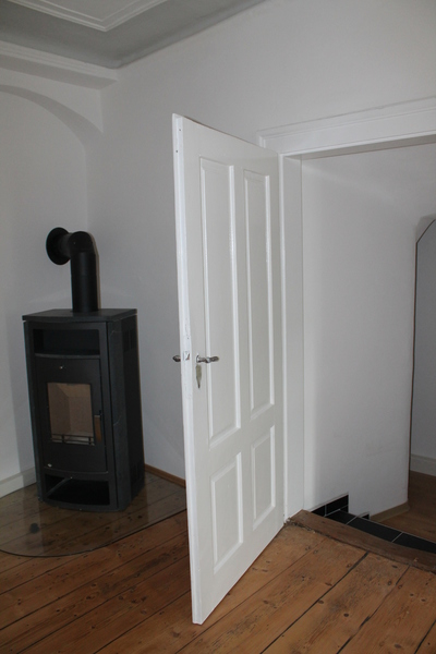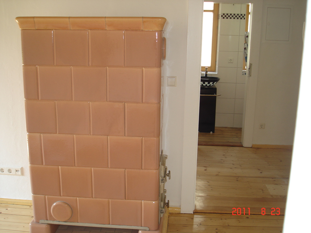 - 2-3 Kachelöfen, mit denen die Wohnung komplett beheizt werdenkann