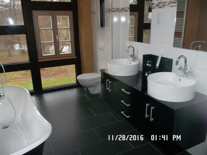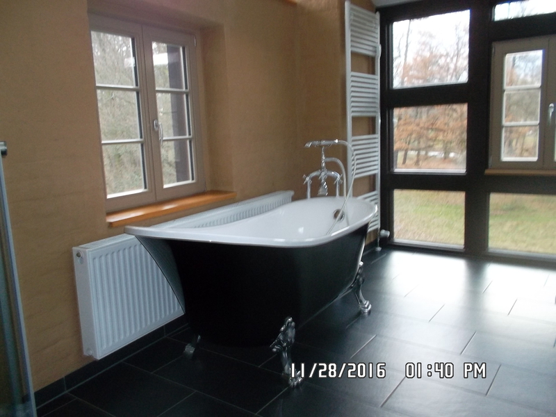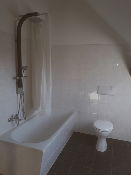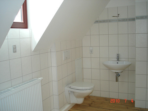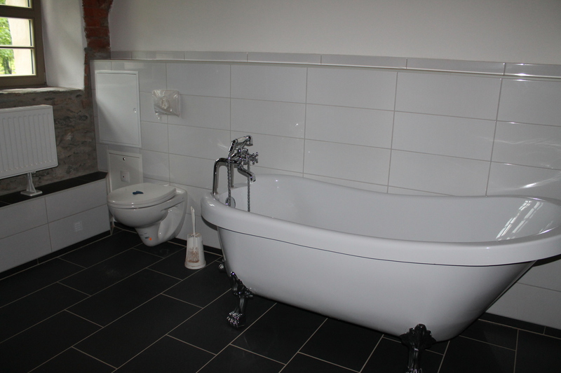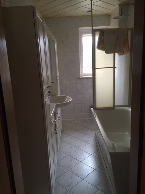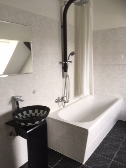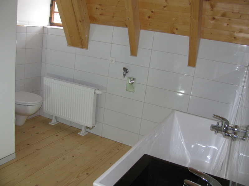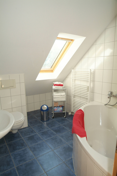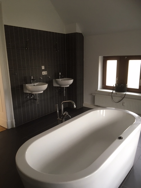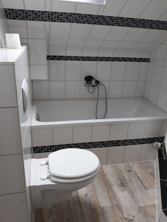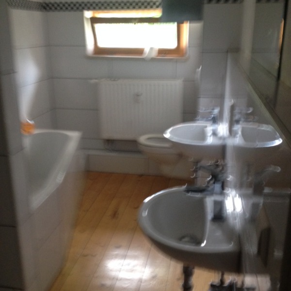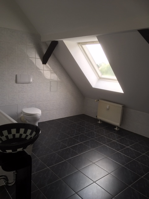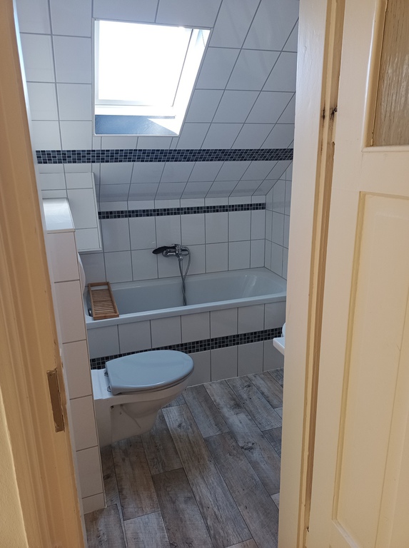Wohnzimmer, Küche, 4 Schlafzimmern, eigenes Treppenhaus, 2 Bäder, separate Toilette, Kaminofen, freistehende Badewanne