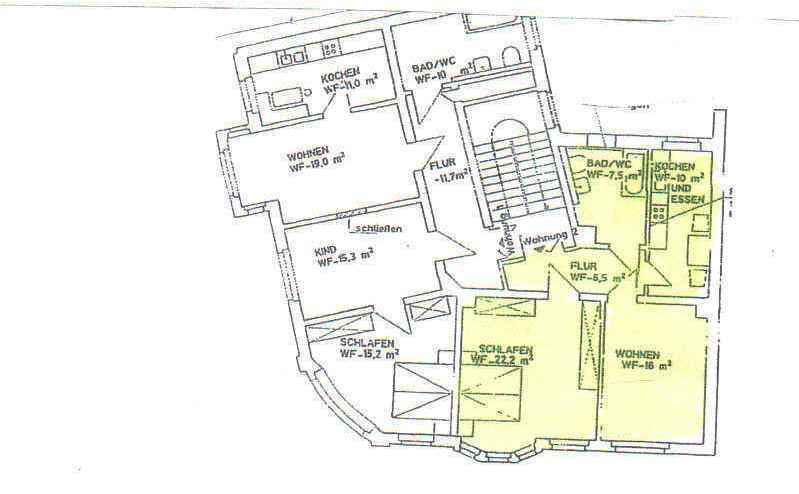 6-7 Zi.-Whg: 1 WZ, 5-6 SZ, Küche, Bad