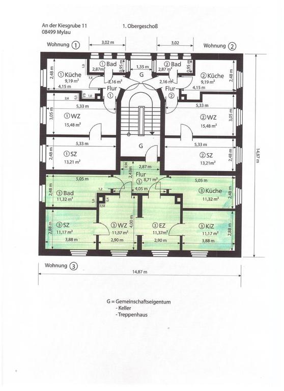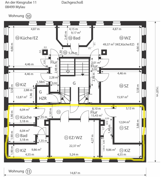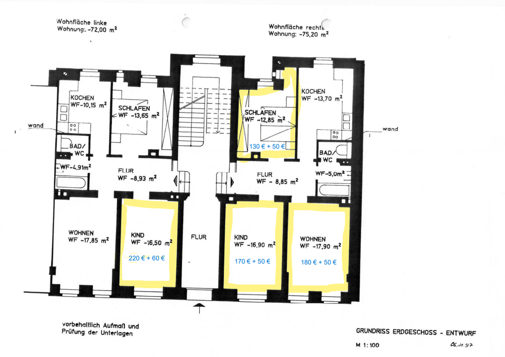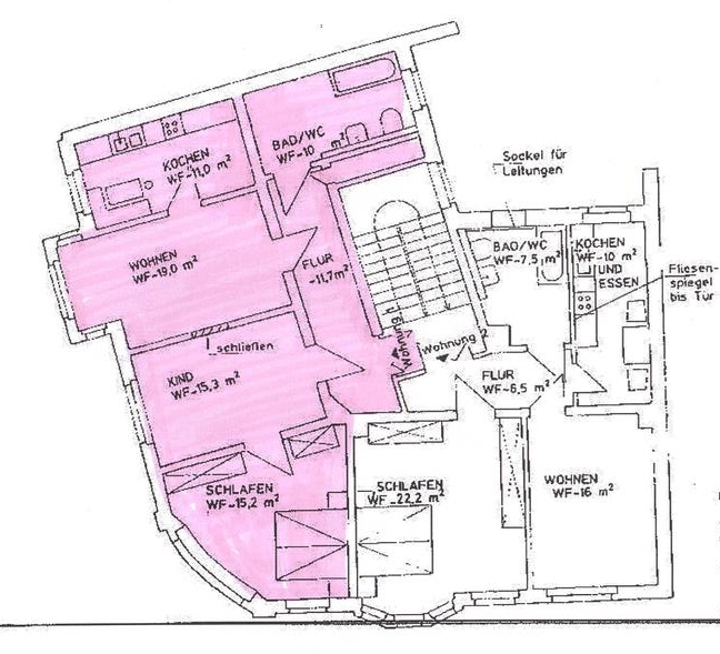 Achtung Hinweis! Wohnung ist im allgemeinen Treppenhaus geteilt - siehe Grundriss!!!