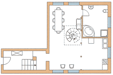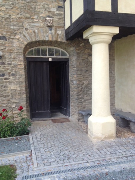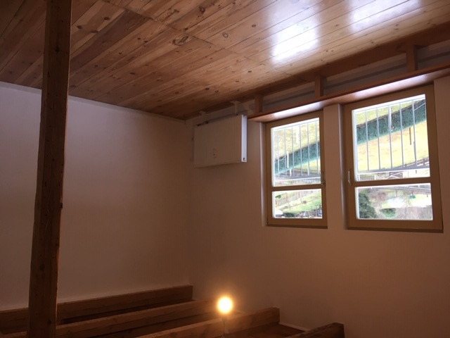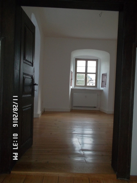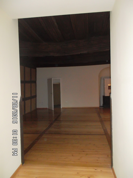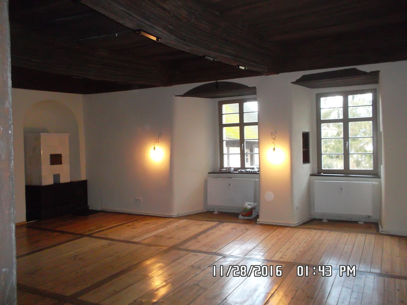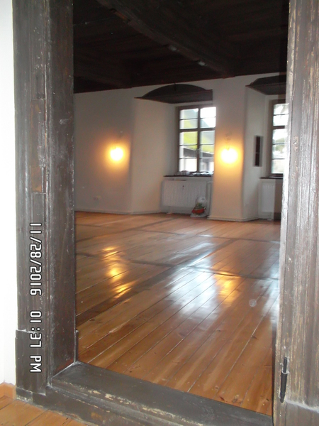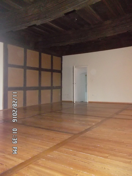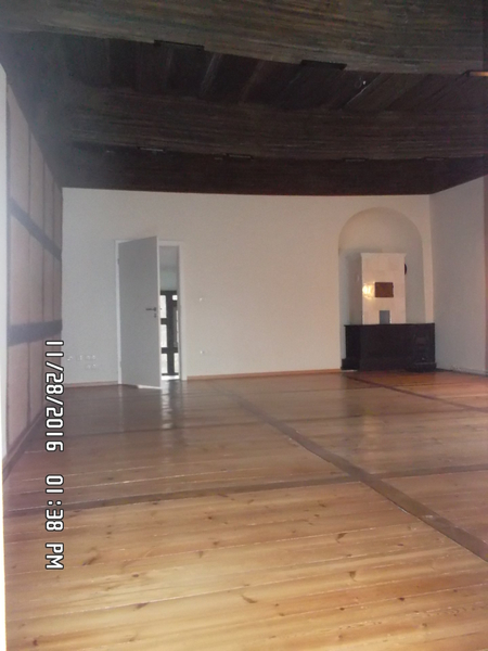 - großes Wohnzimmer (ehemals Rittersaal) mit historischer Decke/Dielen und