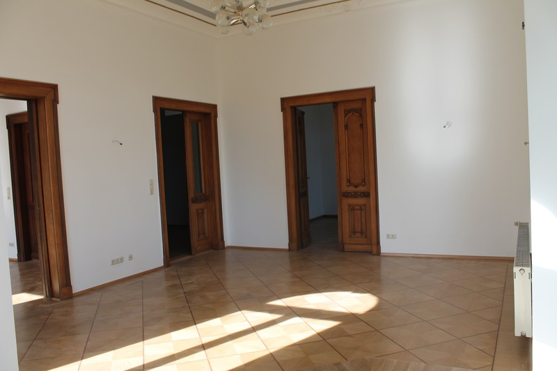 Die helle und großzügig geschnittene Wohnung verfügt über 5 Wohnräume, Küche, Duschbad, Balkon und Zentralflur. Das Bürgerhaus ist frisch saniert. Der Charme des Altbaus mit Dielenböden und Original-Holztüren wurde erhalten.