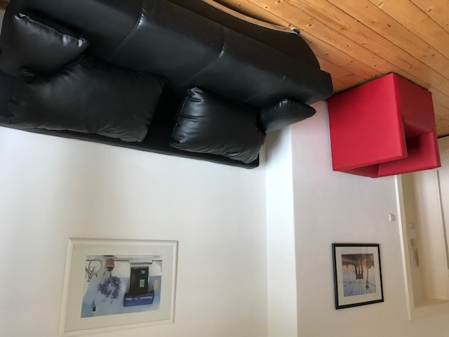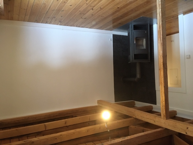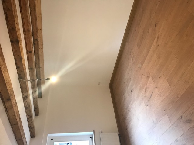 Das Penthouse umfasst vier attraktive Zimmer. Das Bad hat eine Badewanne, eine Dusche und zwei Waschbecken. Das große Wohn-/Esszimmer verfügt über offene Balken und eine Holzdecke und einen Kaminofen. Weiterhin gibt es noch 3 Schlafzimmer. Herrliche, ruhige Lage.