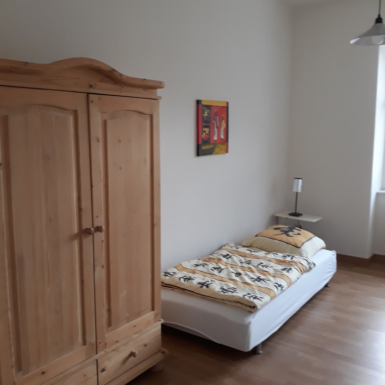 1 x 15,2 m² für 150 € Kaltmiete + 50 € NK (Kaution 450 €), möbliert 200 € KM