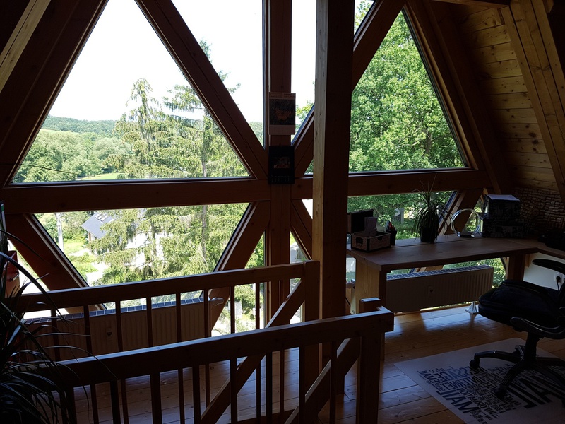 - Küche mit Fachwerk/Glaswand zum Park/Elster.