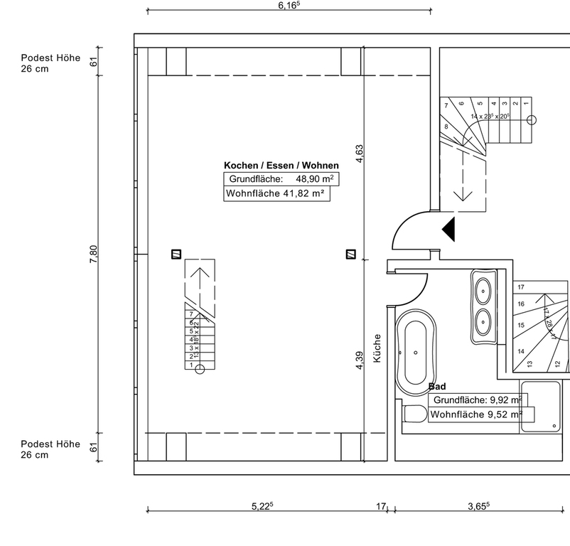 4-Zimmer-Wohnung (mit rechten Teil vom Grundriss) ca. 110 qm