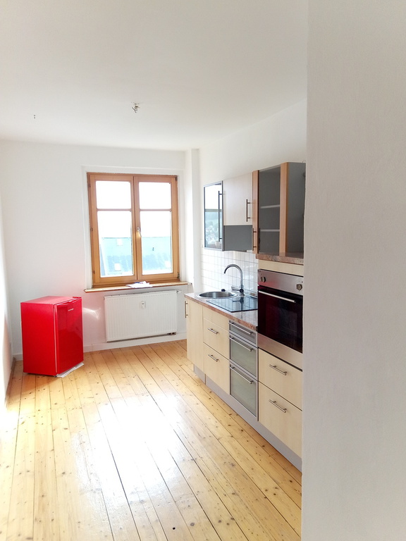 Die helle Wohnung verfügt über 2 Wohnräume, Küche (mit Einbauküche), Bad, Zentralflur, Kellerraum. Das Bürgerhaus ist frisch saniert. Der Charme des Altbaus mit Dielenböden und Original-Holztüren wurde erhalten. Gut für WG-geeignet.